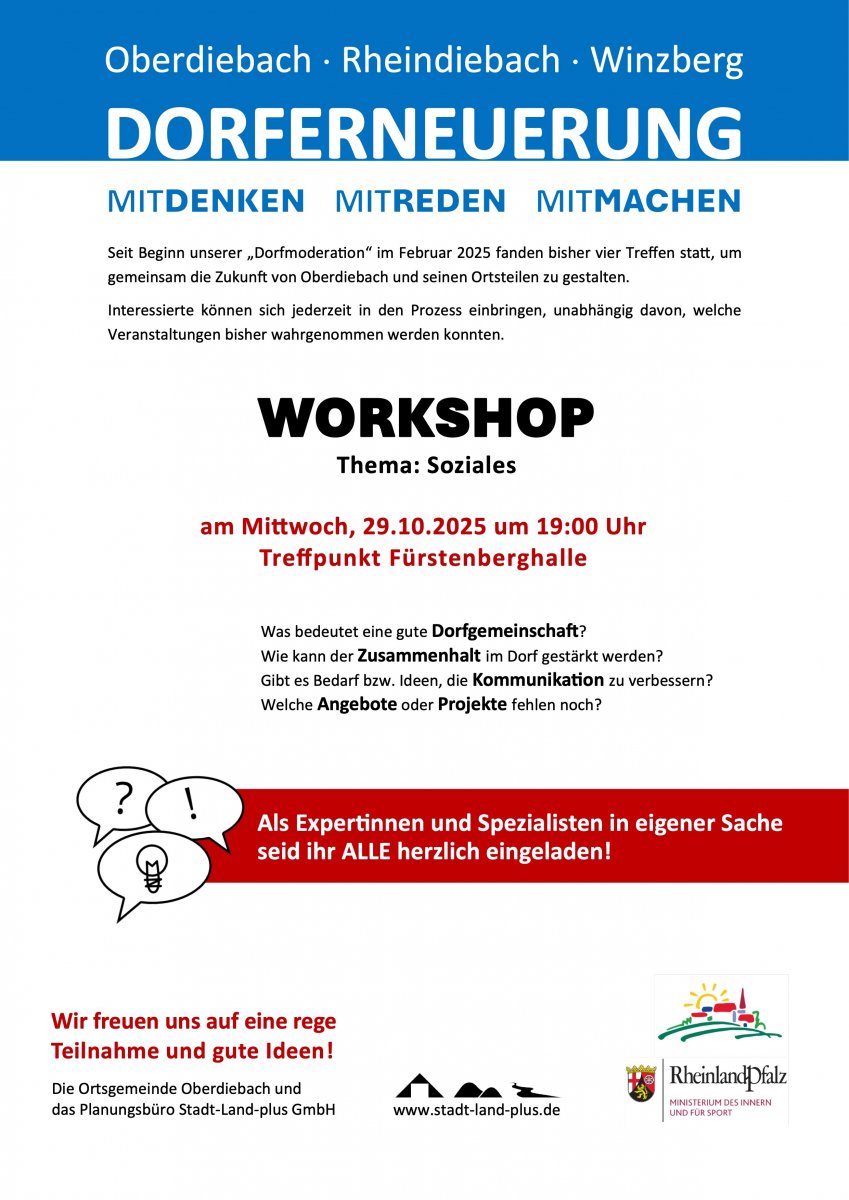----- Dorfmoderation Workshop "Soziales" am Mittwoch, 29. Oktober um 19 Uhr in der Fürstenberghalle ----- Mitgliederversammlung Wasserleitungsgenossenschaft am Mittwoch, 5. November um 18 Uhr in der Fürstenberghalle ----- Nächste Gemeinderatssitzung am Donnerstag, 20. November um 19:30 Uhr in der Alten Schule -----