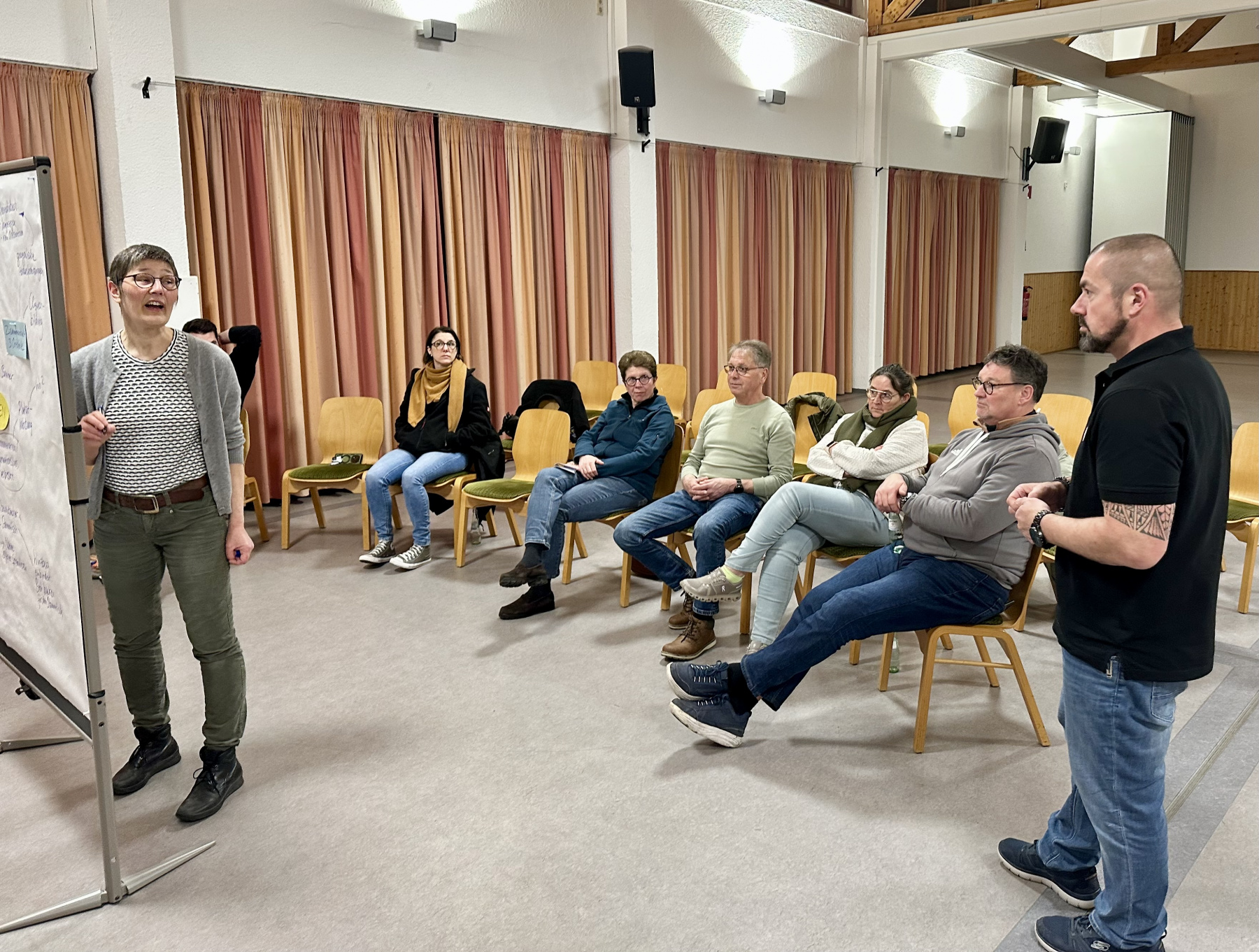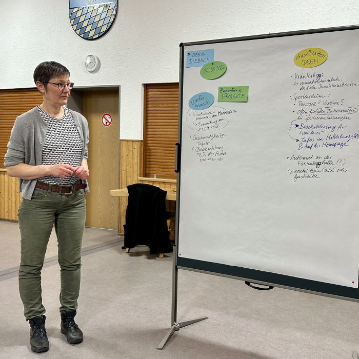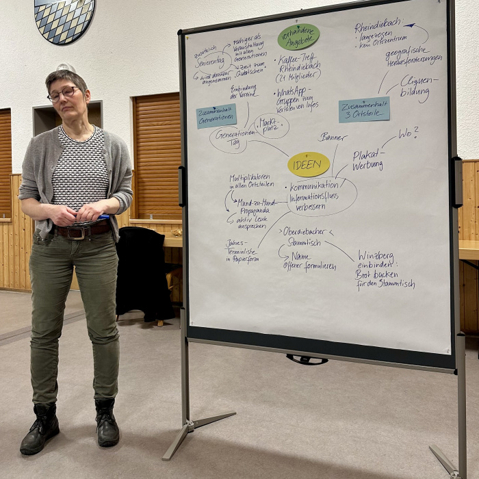 Am Mittwoch, den 26. Februar trafen sich rund 50 interessierte Einwohnerinnen und Einwohner zur Auftaktveranstaltung für das Dorferneuerungskonzept. Und am 22. März wurden weitere Ideen beim Dorfrundgang gesammelt. Die Wünsche der Kinder wurden in einem besonderen Workshop am 24. Juni aufgenommen. Auch beim Workshop "Gastronomie und Versorgung" am 27. August wurden zahlreiche kreative Ideen geäußert. Bei leider geringer Beteiligung fand am 29.10.2025 der Workshop "Soziales" statt. Ebenfalls nur wenige Personen fanden den Weg am 26. März 2026 zum Workshop "Das Miteinander gestalten".
